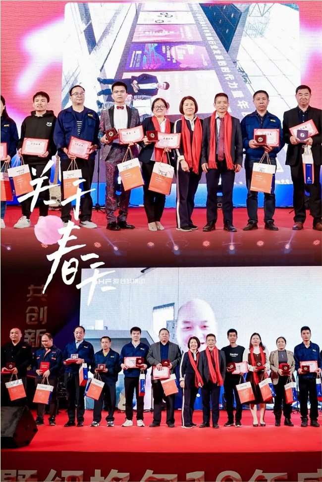 Afin d'exprimer notre gratitude envers les partenaires et les employés qui ont accompagné l'entreprise pendant dix ans, une grande cérémonie de remise de prix a été organisée. Des distinctions telles que « Fournisseur exceptionnel », « Excellent fournisseur » et « Employé fidèle depuis dix ans » ont été décernées successivement, et les lauréats ont prononcé leurs discours de remerciement. M. Chen Zhongshan et Mme Zhang Yejing, vice-présidents des opérations d'usine, ont prononcé des allocutions et remis des prix aux meilleurs employés de 2023, notamment « Élite des ventes », « Employé exceptionnel », « Chef d'équipe exceptionnel » et « Manager exceptionnel ».