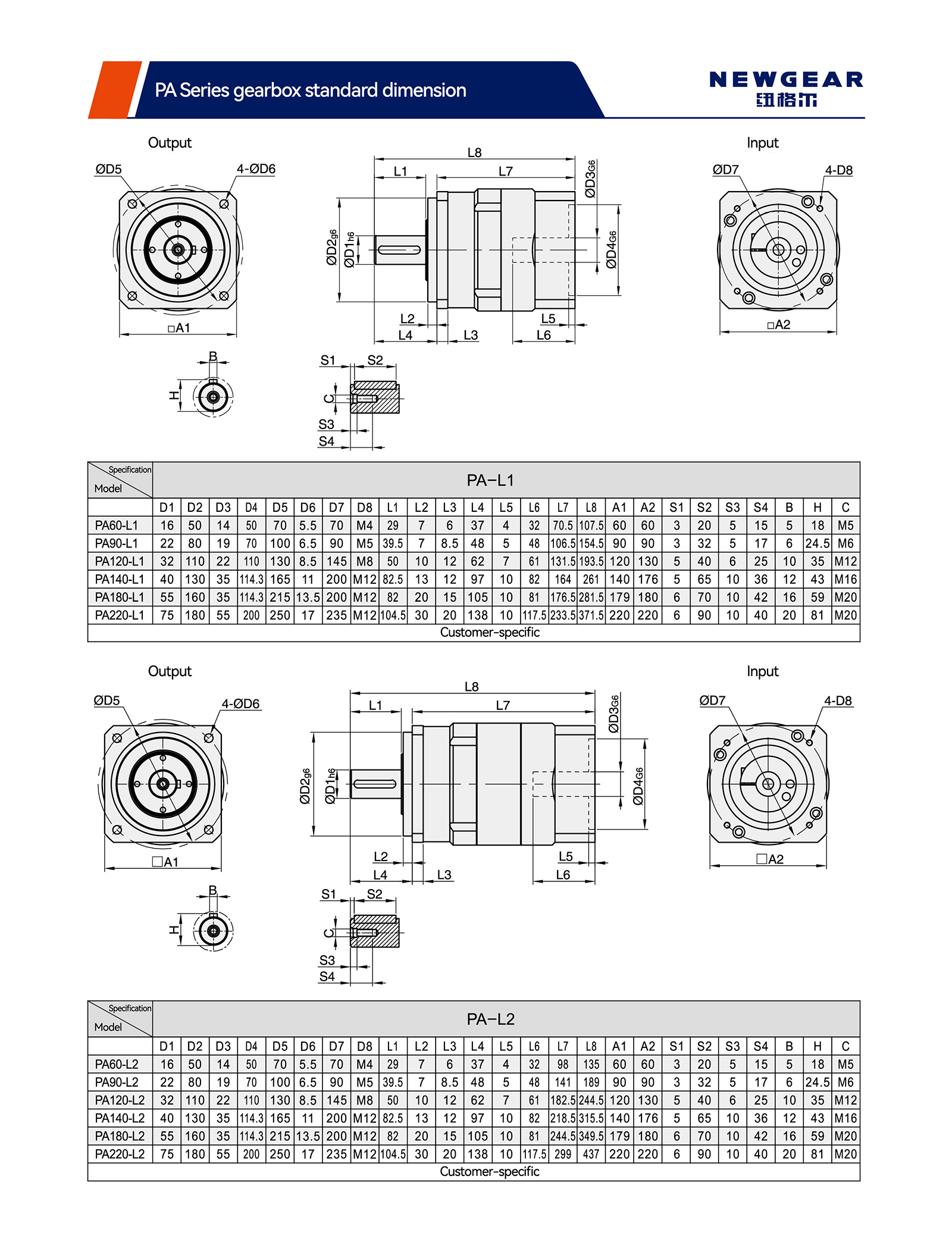 | Paramètres techniques | Série de modèles | PA60 | PA90 | PA120 | PA140 | PA180 | PA220 | ||