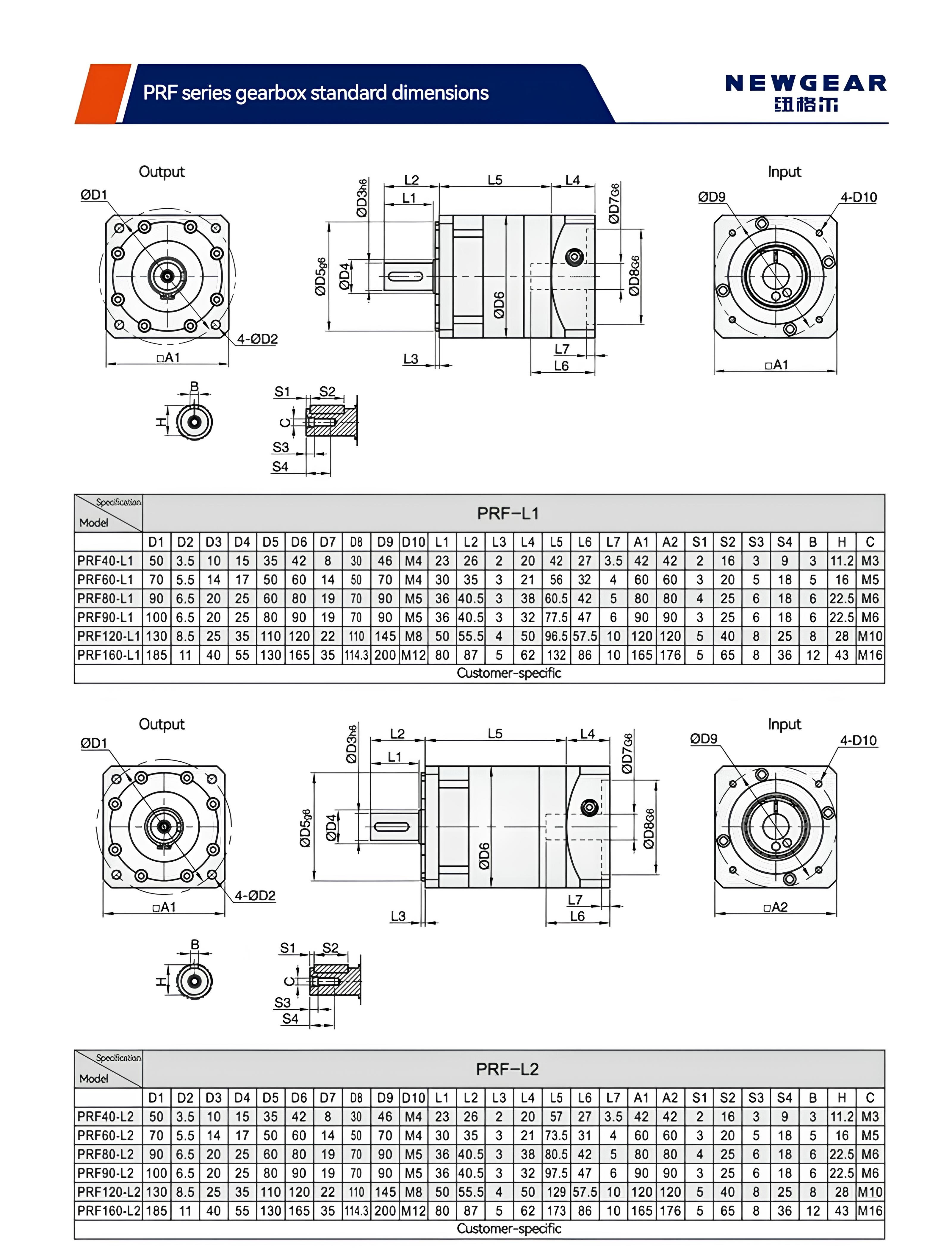 | Paramètres techniques | Série de modèles | PRF40 | PRF60 | PRF80 | PRF90 | PRF120 | PRF160 | ||